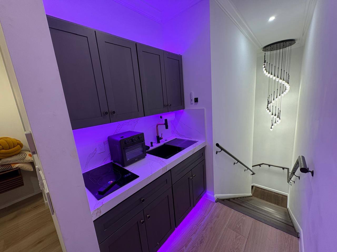🛏️ Sleeping Arrangements Bedroom: 1 King electric adjustable bed with massage, lighting, comfort settings, and hotel-quality sheets & pillows Designed for flexibility, the space sleeps up to 3 people, with a pull-out single bed that can be arranged in the same room if needed. ✨ Main Features 65” Samsung Frame Smart TV (art display + streaming) Dining area with foldable table for extra space Shared hot tub access Bikes, scooters, and beach gear rentals available upon request Perfect for couples, solo travelers, or business stays 🍳 Kitchenette Full refrigerator with freezer 2-burner stovetop 3-in-1 air fryer/microwave/toaster Nespresso machine with pods, condiments & blender Cooking basics, dishware, utensils, paper towels Ideal for longer stays, remote workers, and travelers who enjoy cooking 🛁 State-of-the-Art Spa Bathroom Rainfall shower with body jets Bidet, heated toilet seat (auto-close & flush) Towel warmer, plush robes, luxury toiletries Mouthwash dispenser, hand lotions, and soap Hair dryer & premium linens Feels like a private hotel spa inside your suite 🏡 General Amenities Central heating & A/C Free Starlink high-speed WiFi (work-friendly) Iron, clothes steamer, hangers 5 exterior security cameras (outward-facing only) Interior staircase to access unit Blackout shades, USB-charging nightstands 🚗 Parking Private side entrance Free street parking 📍 Location & Lifestyle Prime Wilton Manors location — walk to bars, dining, and nightlife on Wilton Drive Just 3 miles to Fort Lauderdale Beach 🏖️ Minutes to Las Olas Boulevard, Downtown Fort Lauderdale, Galleria Mall, and Hugh Taylor Birch State Park 🌴 Short drive to FLL Airport, Port Everglades Cruise Terminal, and Hard Rock Casino 🎰 Easy access to Miami Beach, Wynwood, Hollywood Beach, and Sawgrass Mills Mall for day trips ℹ️ Additional Information Homeowner lives on-site in a separate unit with shared walkways and hot tub Tesla rental available via Turo (inquire for details) Bike, scooter, and beach gear rentals available upon request Cameras monitor exterior entry points, parking, and yard (no interior cameras)