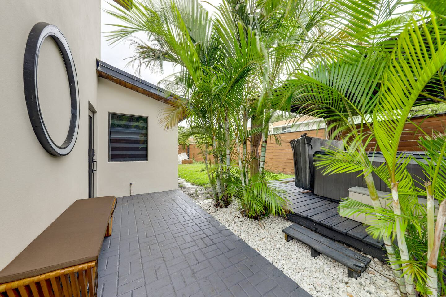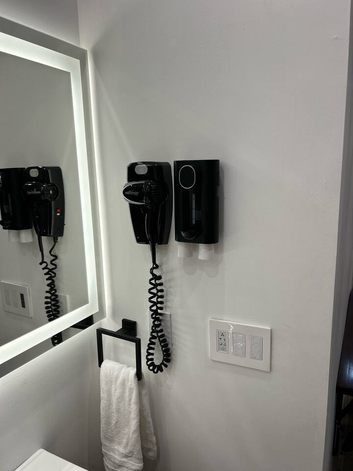 Luxury Wilton Manors home with electric bed, state-of-the-art spa bathroom with towel warmer, and a fully equipped kitchenette with dining area. Relax with hot tub access, blackout shades, and a 65” Samsung Frame TV. Private entrance with free street parking. Perfectly located—3 miles to Fort Lauderdale Beach, minutes to Las Olas, Downtown, Galleria Mall, and Hugh Taylor Birch State Park. Walk to Wilton Drive dining, bars, and nightlife, and only a short drive to FLL Airport.